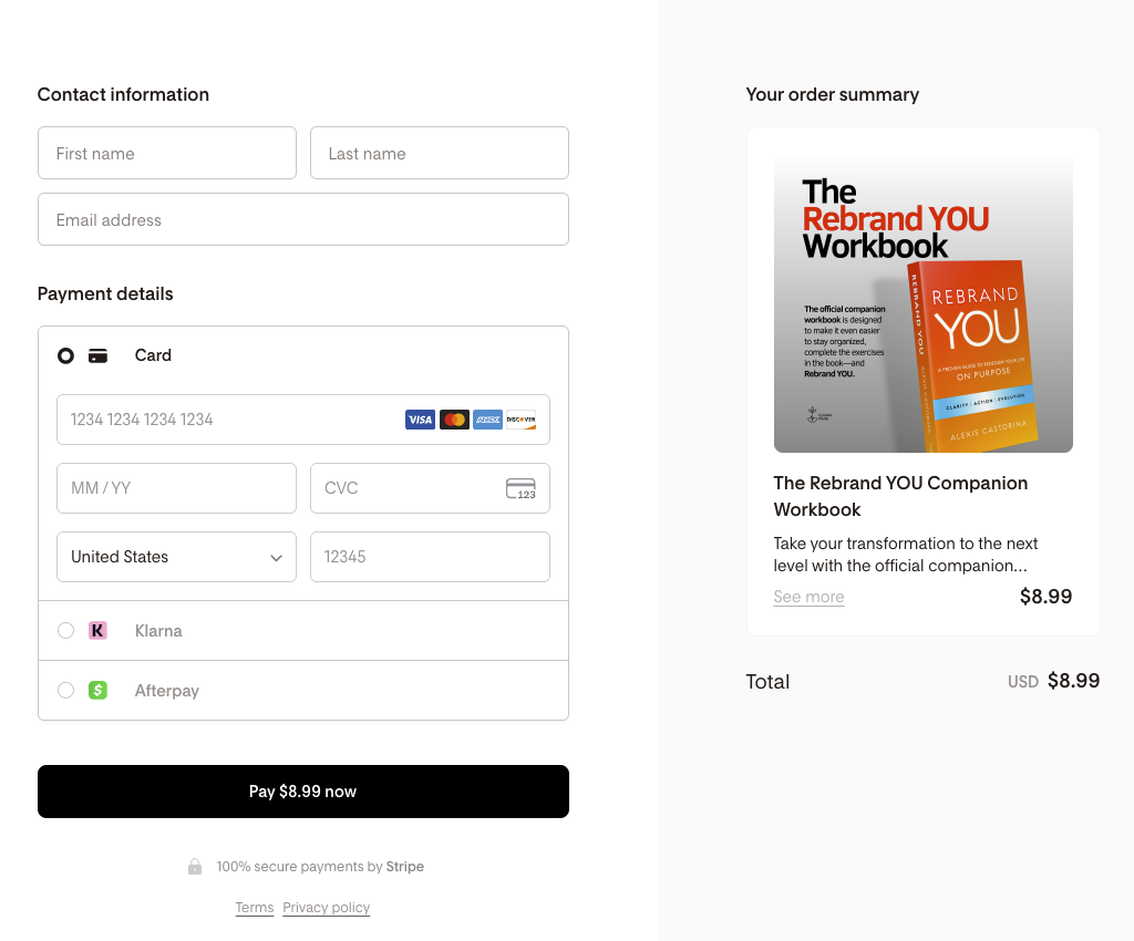 A special welcome message from author Alexis Castorina sharing how the workbook was designed to help you with your rebrand journey.